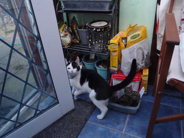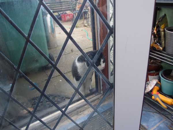 In other news this week, we had two visiting cats come a-calling. This old guy, I feel so sorry for him. He always looks so beat up and I don’t even know if anyone takes care of him, he often has abscesses or cuts, probably from fighting and it makes me sad. He is also clearly used to being chased away from people’s gardens as he tends to take off as soon as you open the door, but he has got a bit more used to me now and so if I see him, I give him something to eat. Sometimes he has trouble eating too, and I worry that his teeth are bad and causing him pain. Here he is being very brave and peeking in the door.