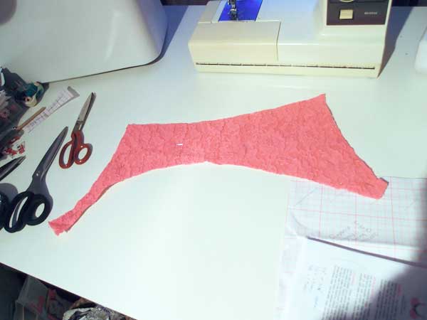 I cut out the pieces – two in total – and obviously identical – oh and a piece for the gusset which you can’t see. The way this pattern is cut, means there are no side seams but one big seam that goes from the front to the back.