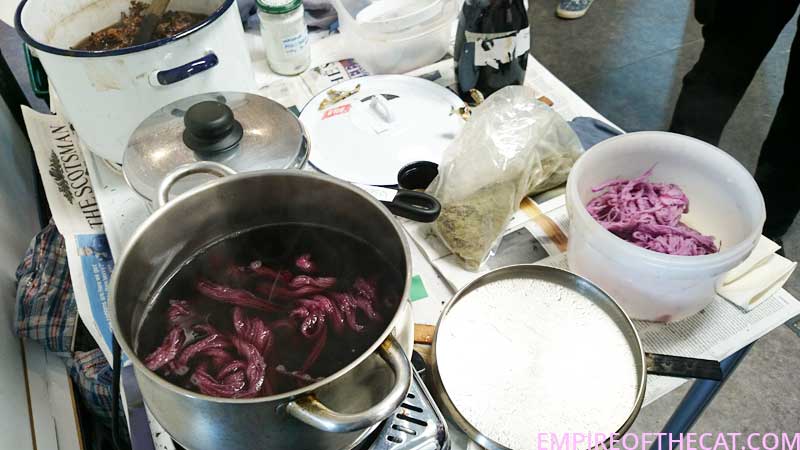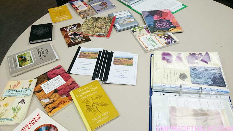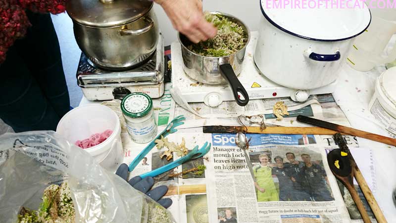 I’ve dabbled a wee bit with plant dyeing before, mostly with some of the more common/well known plants known for dyeing, such as onions, nettles, coffee, tea, tumeric etc, but I was interested in learning more about what other local wild plants could be used for producing good dyes and of course, being inspired by the colours of Scotland, I was intrigued to see what plants could be used and what I could possibly track down when on my trip next month.