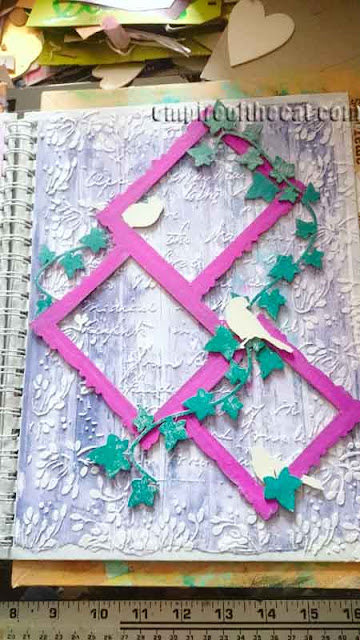 Once the frame was attached it looked like this, so now all I needed to do was plan out where to put the extra bird and ivy pieces that I wanted to use.