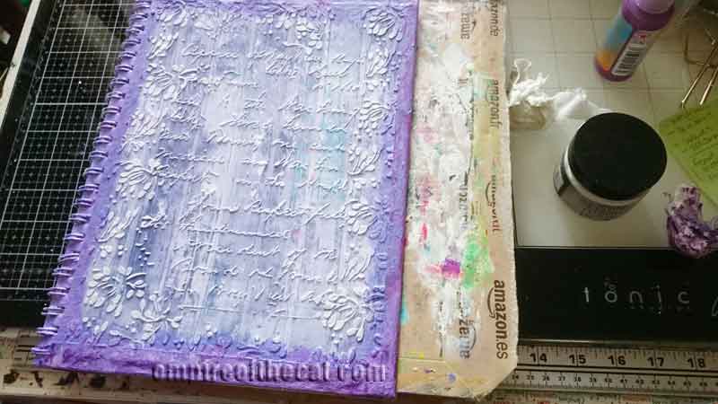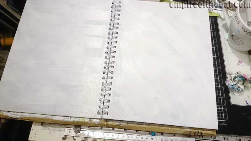 Then I painted the sketchbook cover with white gesso and left it to dry.