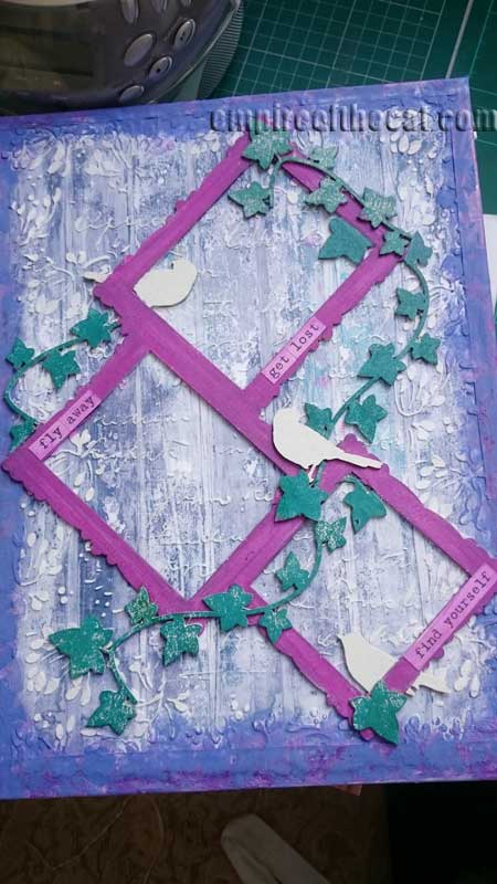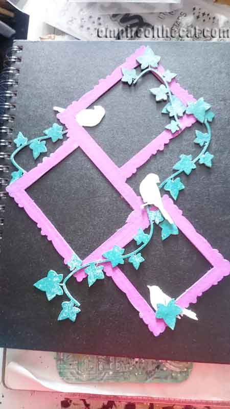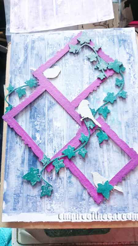Once the frame was attached it looked like this, so now all I needed to do was plan out where to put the extra bird and ivy pieces that I wanted to use.
