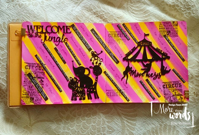 Today I am sharing my DT project for the More Than Words Main Challenge. The theme of the challenge is to be inspired by the word FUNNY and to use STRIPES. Stripes always make me think of circus big tents and clown pants so that was already in the back of my head as soon as I saw the theme, which obvs I knew in advance being on the DT. As time went on and we went into lockdown here, and life took a surreal turn, I found myself thinking more and more about the circus and this couldn’t be more true every time I stepped outside to visit a grocery store! It is like a jungle out there, it’s dog eat dog, every man for themselves and the person to hoard the most toilet paper wins! Or not really since we have plenty of toilet paper and anyone who hoarded it in the beginning, preventing other people from having any, is a mug!