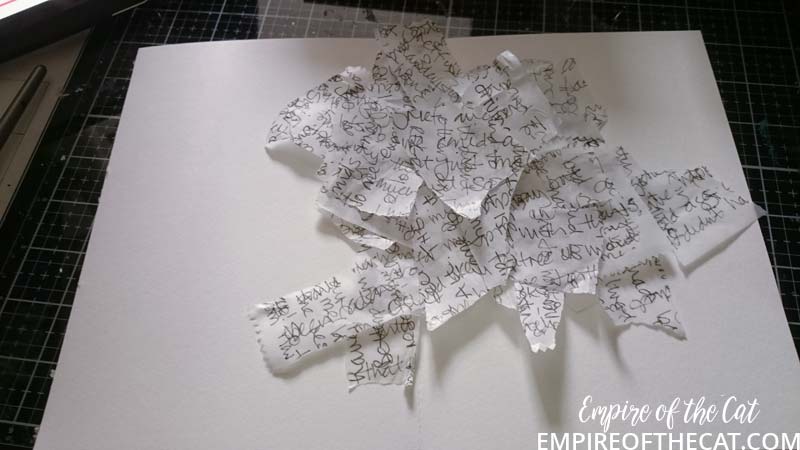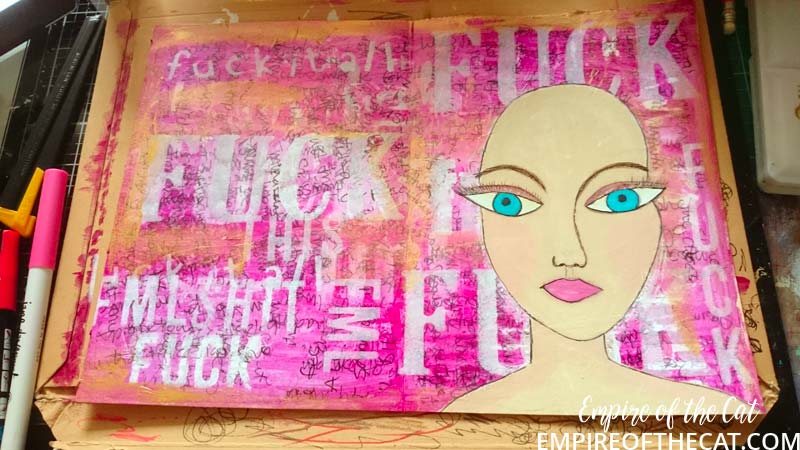 I think that speaks for itself lol. Just one comment I wanted to make and that was that I had put off doing this class lesson because I didn’t want to do something negative, I didn’t want to write down things that made me sad or mad, and I really don’t like those creepy little people. However, yesterday I finally did the lesson and it was a very cathartic experience. Letting out all those thoughts that have been plaguing me for months and then ripping them up and plastering them in the journal, actually did make me feel better! So I guess what I am trying to say is that it might have been helpful to me to have done it sooner instead of avoiding it and I might have felt a lifting of my spirit a bit earlier.