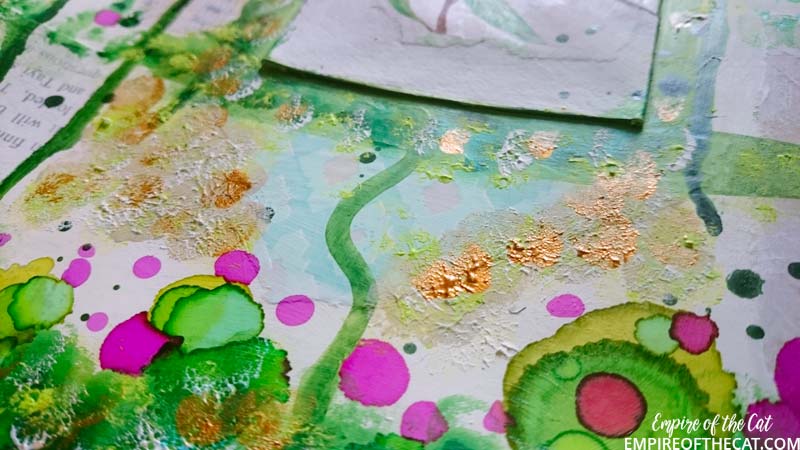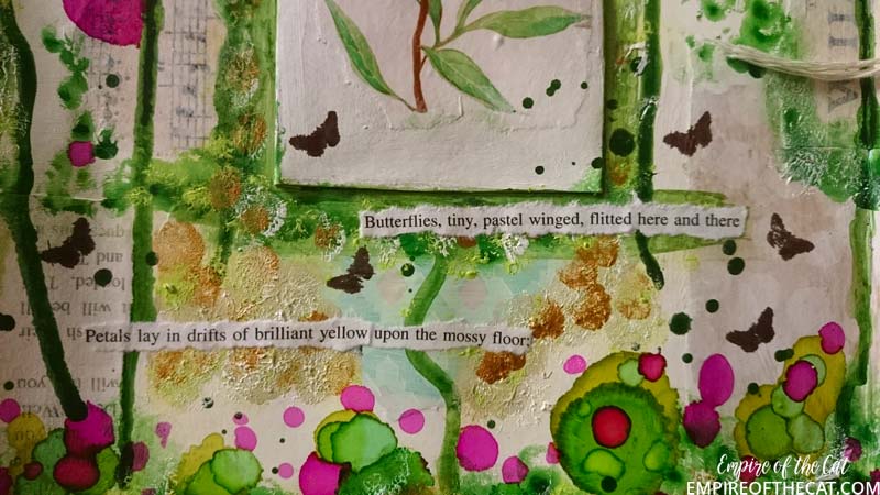 This turned out so different from when you first started. I love how it morphed into something totally different. I’ve had non-art friends who don’t believe when I tell them the art (or the page) decided to go a different direction. I guess only a mixed media or other artist could truly understand why your page changed so drastically. As with your previous entry, I am in awe of your art. It’s fabulous and I love the recycling aspect of it, too. Thanks for sharing this beauty with us at Art Journal Journey using Alison’s theme. Hope to see you here in September, too.