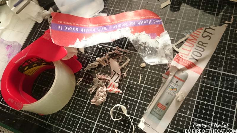 I love image transfers! When I saw the challenge, I knew that I wanted to use an image transfer done on a gel plate as I had a few of those saved up but when I checked in my stash, none of them were the right colour. There was no time to do gel medium image transfers and so Plan C was to do a tape transfer. These are very quick and easy usually – just not tonight haha. I have been saving these very good quality thick glossy magazines to use for my gel press image transfers, and so I flicked through one of those, and choose this image, which is actually a shampoo ad. The problem was that the paper is so high quality and coated, that it took forever to rub the paper off, but eventually and with a lot of water, it came off.