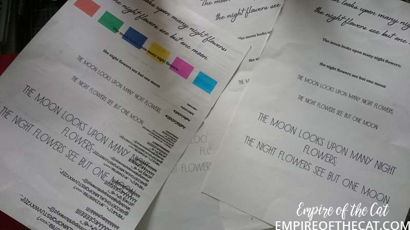 There’s a few photos included below but no step-by-step photos on how it came together, because it happened very fast and my background was from my stash. I had this quote in mind and thought I would just quickly type it up in a few different fonts and print it out to add to my card. Of course it couldn’t be easy! For some reason the printer is playing up, and telling me there is a paper jam. There is no paper jam. What I suspect is that it is kitty related. One of them in particular has been using it as a step to reach higher places ie top of the bookcase (!) and she doesn’t step lightly, she jumps up and down, on and off it. I think it has put pressure on the rollers so there is not enough room for them to roll and so it thinks there’s a paper jam.