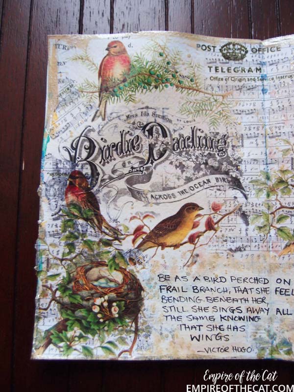 A beautiful spread Elle! I love those bird papers, and that’s a great quote.