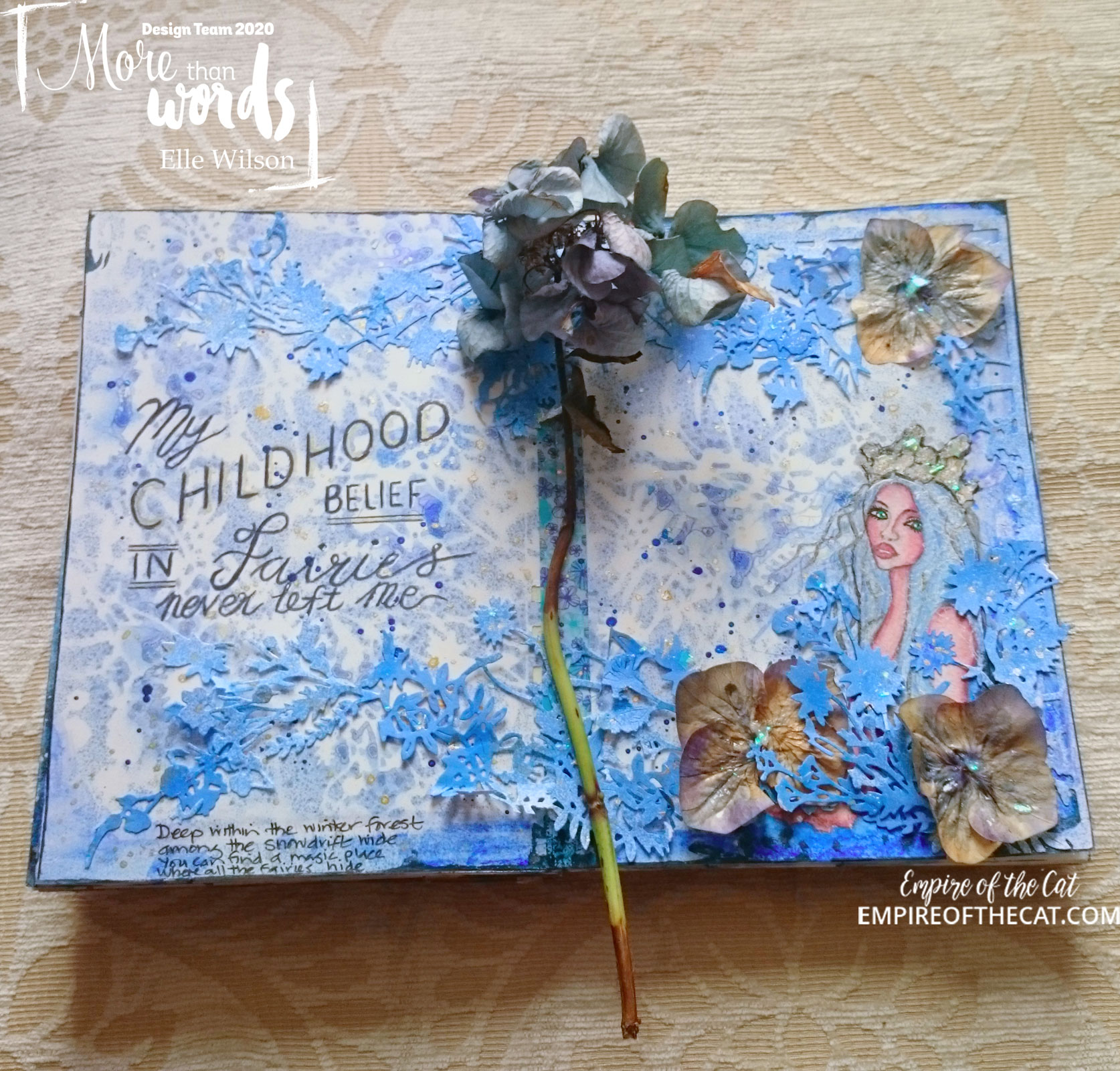This is so beautiful Elle. Your rescued die cut page looks perfect here with your fairy. I love the added die cuts and those dried Hydrangea flowers. I also love the words that you composed and handwrote! Magical indeed! Hugs, Chrisx