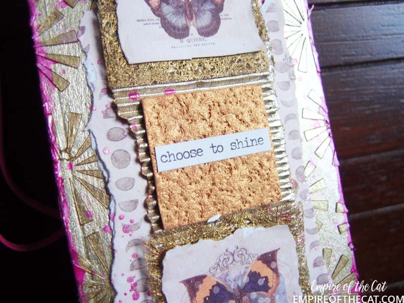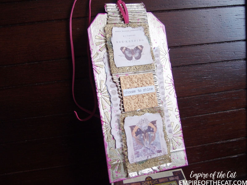 Here’s another look in the daylight. The choose to shine sticker is one of the Tim Holtz small talk stickers and seemed appropriate with all the shine going on in the tag!