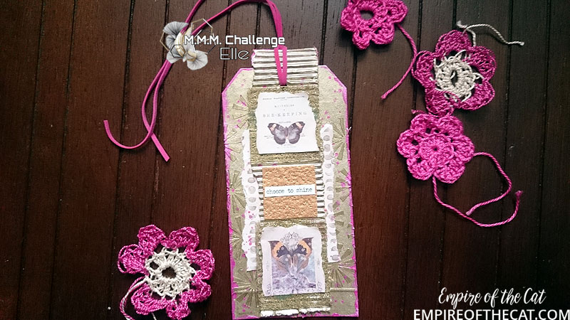 Hi hi hi or maybe that should be ho ho ho! It’s beginning to look a lot like Christmas and so with that in mind I have a lovely shiny pink and gold tag to share with you today. This is my first Design Team project for a new challenge blog that is all about small things, all things miniature in fact, and it is called Marvellous Mini Masterpieces! Here comes my tag…
