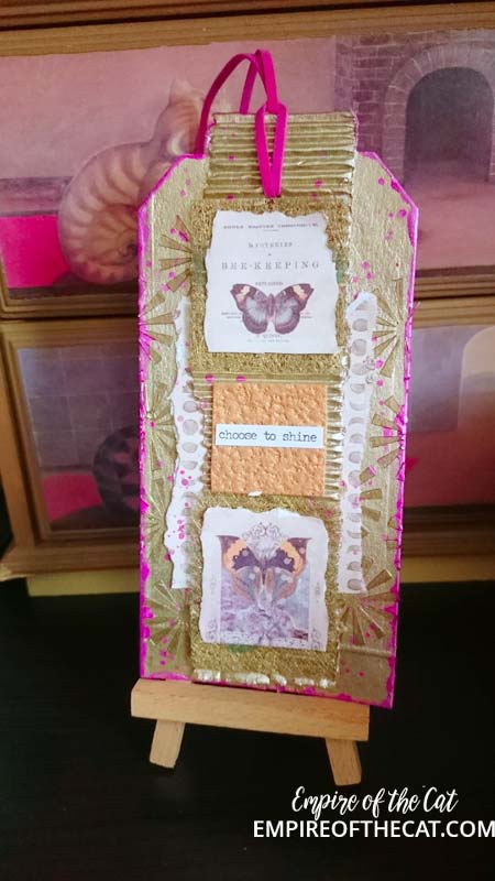 I love all the pinks and purples in this tag, but when I came to make the tag my brain went in another direction and I ended up focusing more on the gold elements in the mood board. Here’s a few step by step photos of how it came together.