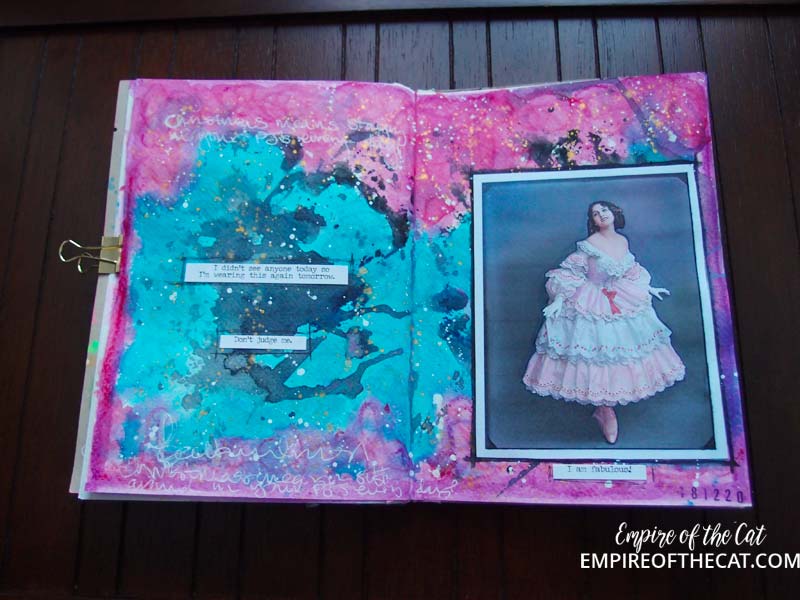 So this page was inspired by a couple of things that came together unexpectedly. I have been following Kasia’s Advent Calendar prompts (still catching up even though it finished today) and so I had started this page for the “colour” prompt for Day 8. Yup, that’s some messy colour going on there lol