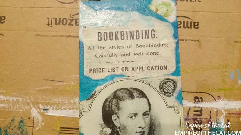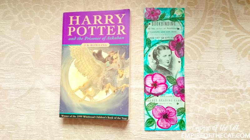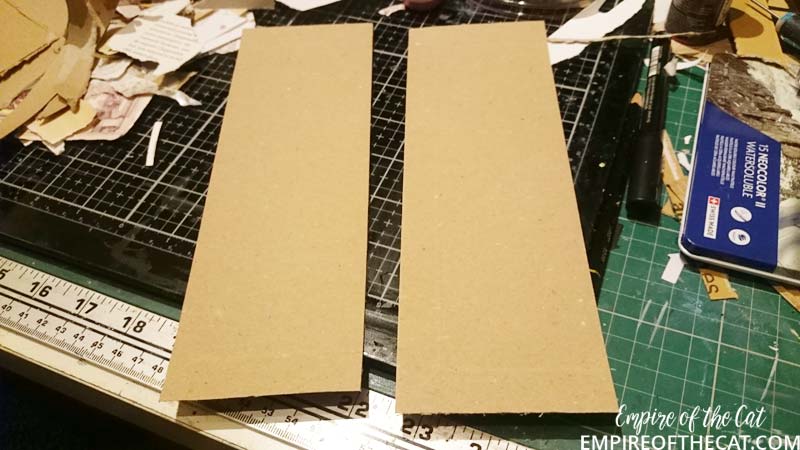 I cut out two pieces from that large box, measuring 9 x 3 inches – hey I like big bookmarks and I can’t deny! Seriously, if you want a smaller bookmark, just cut out a smaller size, but I have a lot of large art books and I didn’t want my bookmark getting lost inside one of them so I made it bigger. You will see it later on in the post, next to some different sized books.