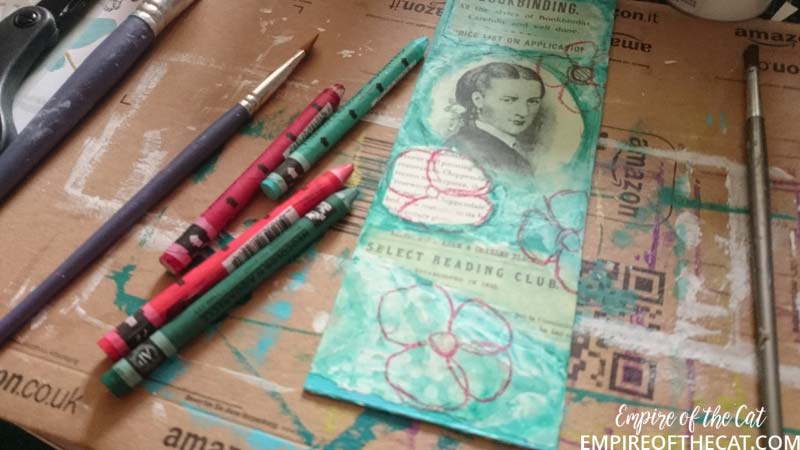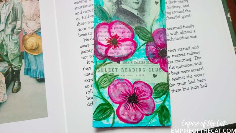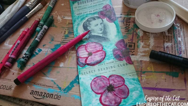 For the front of the bookmark, I used a couple of different colours of acrylic paint and blended them together to give an ombre effect.