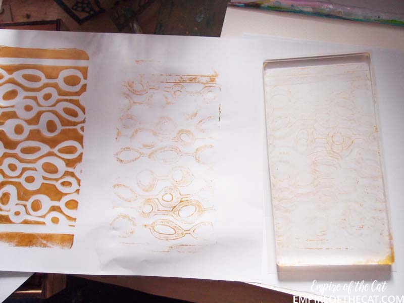 When you pull the print, it will reveal the lovely design of the negative piece with the gold background behind it.