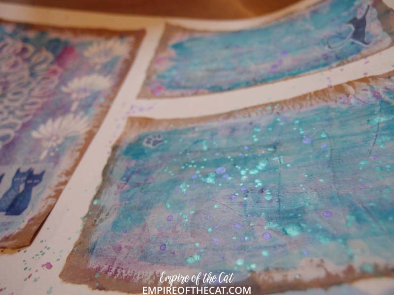 Here’s a look at some of the gorgeous blue and purple metallic watercolour paint I got recently. I’m been using metallic watercolour for a while now but this set is from an English company and I got a set of 12 – the pans are not huge but you do get 12 different colours and watercolour lasts for ages anyway.