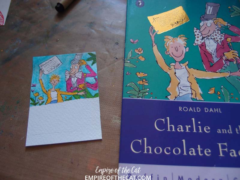 After painting the rest of the background, and the golden ticket! It was time to add the quote…