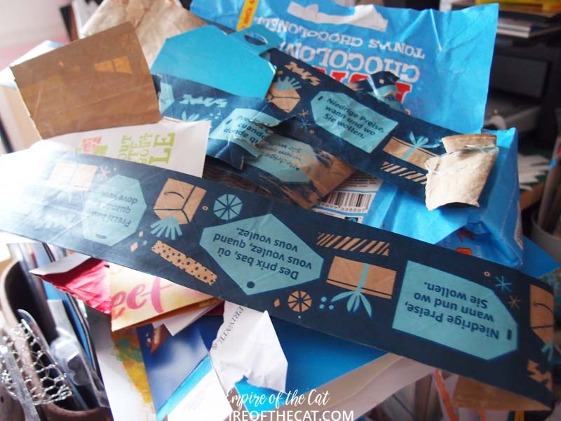 Here is a random selection of, well, I guess some people might call it trash, garbage, rubbish lol, but I just see it as yet more art journaling supplies and collage fodder! They will all be used eventually! Oh and see the Pukka tea box on the right? That After Dinner tea is my favourite atm!