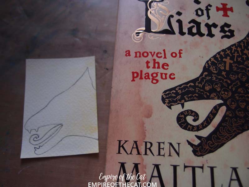 Once everything was dry, it was time to add the quote and the gold details. I have to say, it’s really fun adding all the little icons inside the wolf’s head, even though they are tiny and not very good, I like the overall effect it creates and it has given me an idea for something else I want to try.