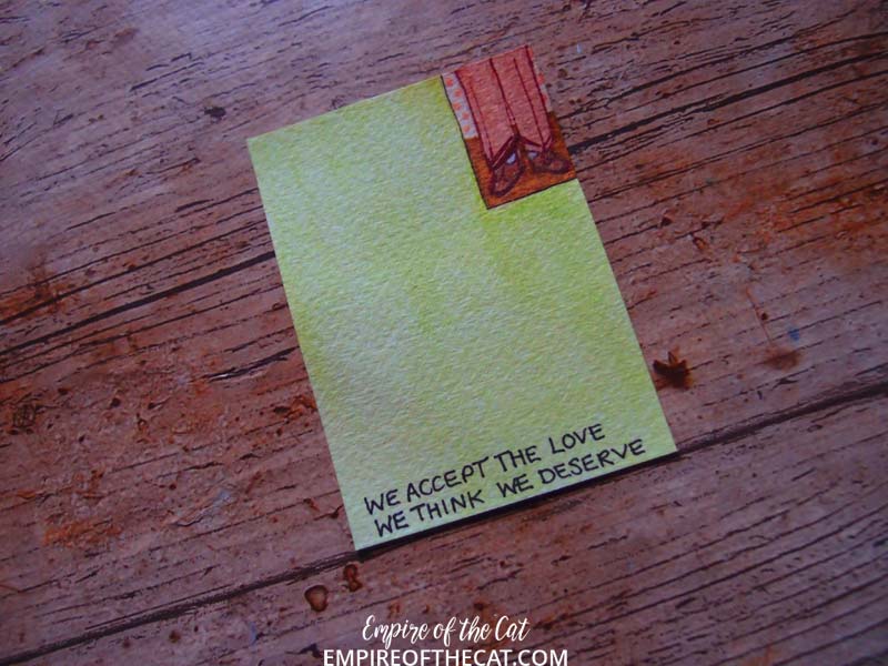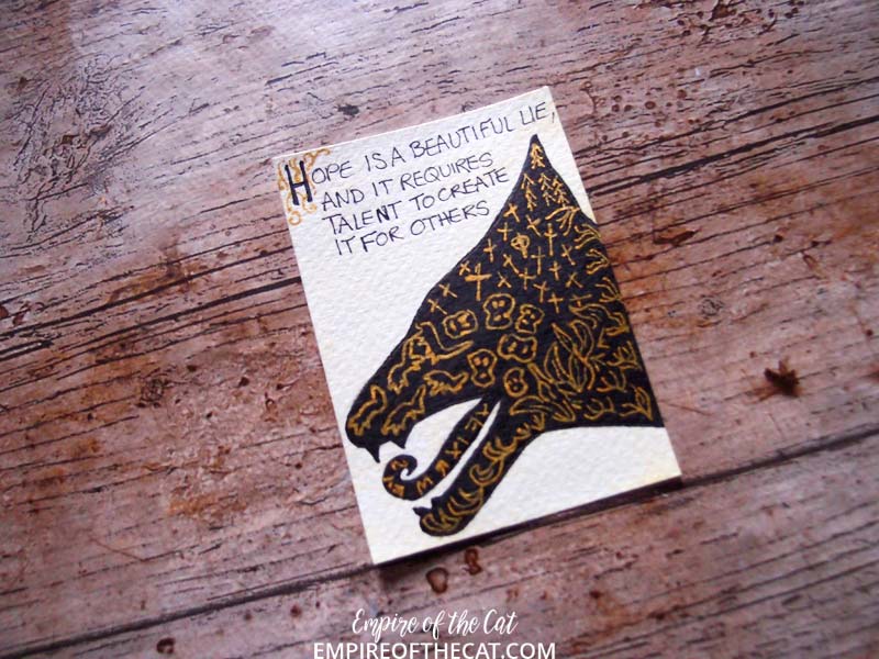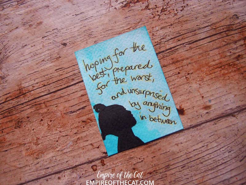 Really wanted to write the quote in cream like the title is on the book cover but it just kept fading into the background, so it ended up being black pen.