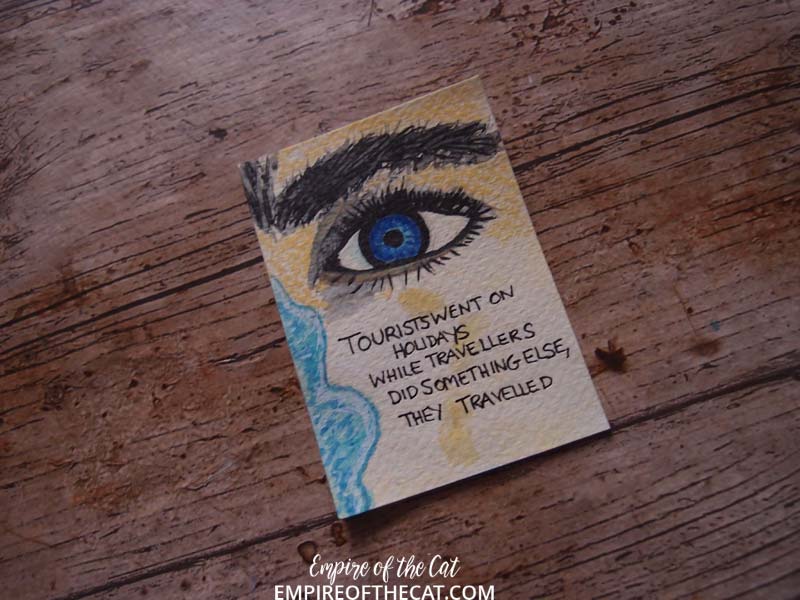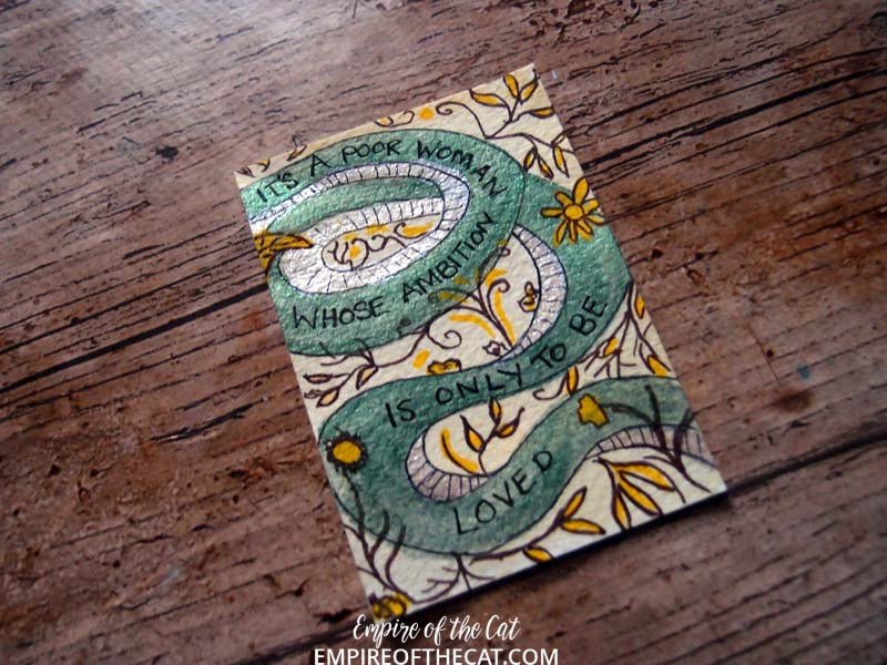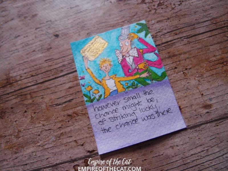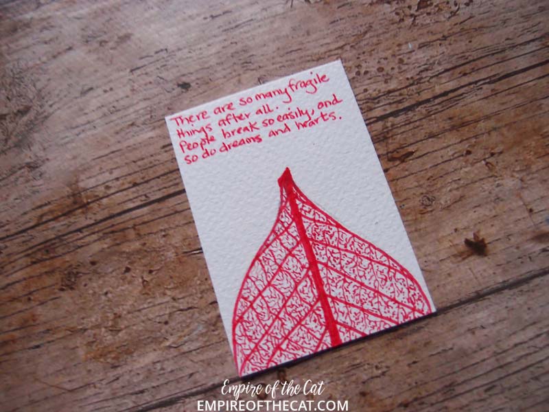 I’m so annoyed with myself with this one, after taking great care to draw the leave upside down like it is in the book, when it came to writing the quote, my brain told me it was upside down and needed to be turned the other way. Arrggh!