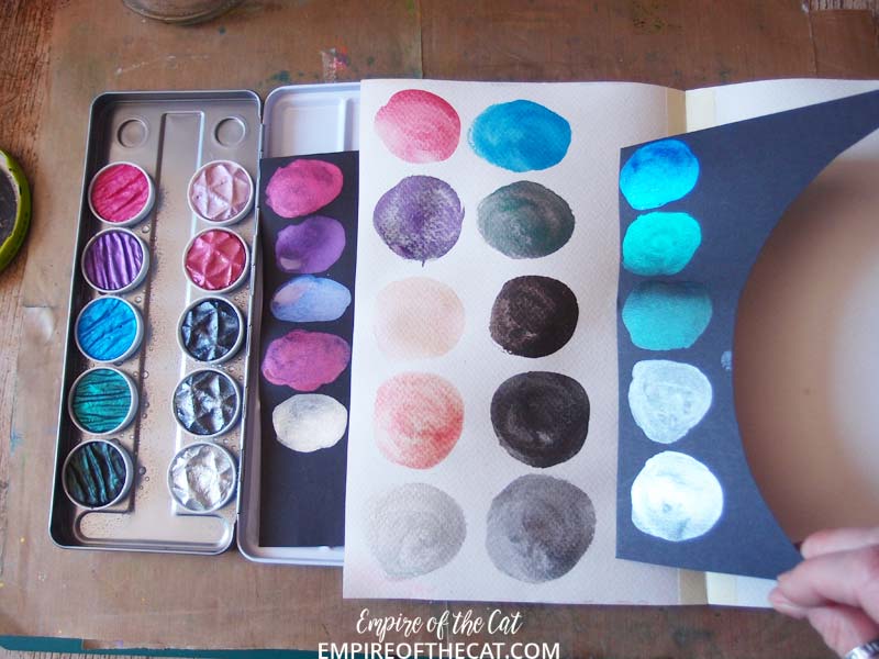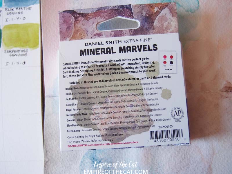 I noticed on the back it says: Daniel Smith Extra Fine Watercolor dot cards are the perfect go-to when looking to enhance or create a work of art! Journaling, lettering, card making, stamping, fine art, crafting or swatching simply for colour fun. That’s exactly what I was doing Daniel Smith, swatching for colour fun!