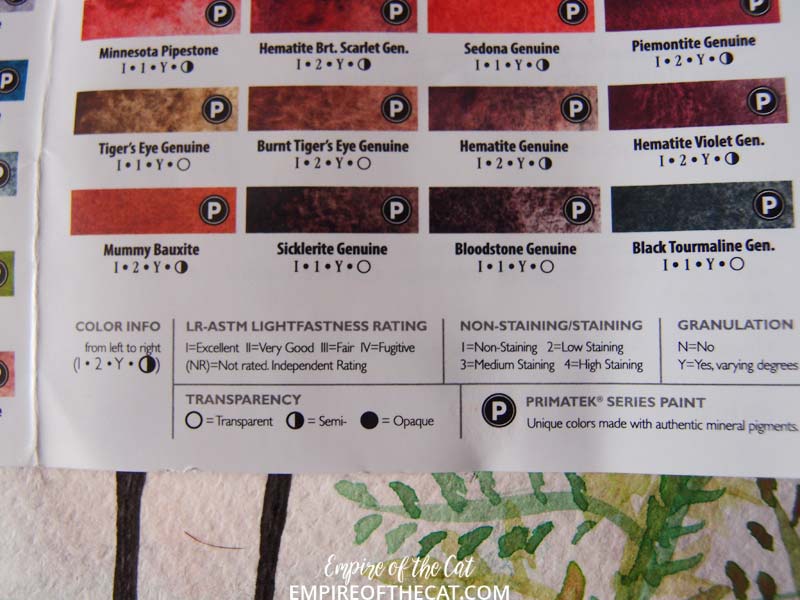 Before the computer died and I lost my post, I was talking a lot about granulation of some of the paints but instead of writing all that out again, I added some photos from the packaging that explains it.