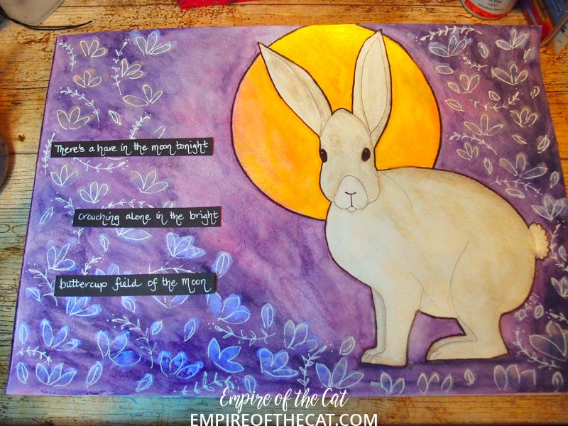 I also added a layer of gold metallic watercolour to the moon and some stabilo outlining.