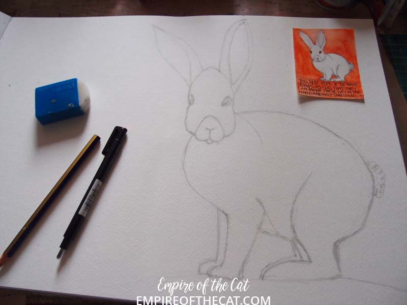 Here’s my little baby hare on the ATC and here is his much bigger version on A3 paper.