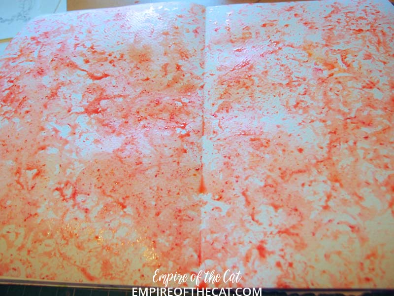 I started with a watercolour stamped background using some Jane Davenport crayons. I like them for this kind of thing as they are very soft and creamy. It looks messy when it’s wet but nice when it dries.