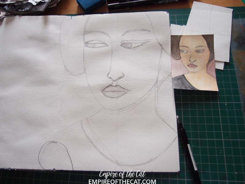 Definitely empire of the cat! Ha! Kitty shall not let you forget. Your journal page is terrific! You drew the face well each time. I like that you added sections from the story. You are very good with your Neocolor IIs. At my old age I’m just learning how to paint with watercolors and Neocolor IIs.