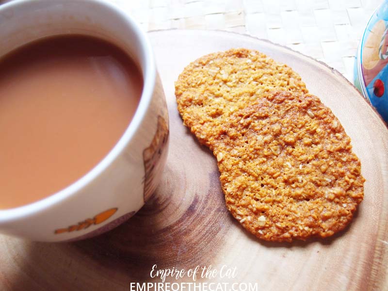 For today’s post, I was inspired by tea! [icon name=”coffee” style=”solid” class=”” unprefixed_class=””] [icon name=”coffee” style=”solid” class=”” unprefixed_class=””] [icon name=”coffee” style=”solid” class=”” unprefixed_class=””] Both the idea of tea and the tea that I was drinking. Here’s the tea I was drinking along with some tasty Anzac Biscuits!