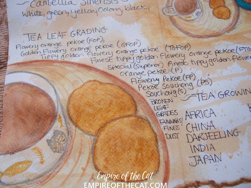 Wow, this is wonderful, Elle. For a part time job, you certainly had to know a LOT. I love how you used the tea to create the background of the tea inspired page. I am glad you shared this with us, as I knew most of what you shared today. What I wasn’t familiar with were all the pekoe blends. That was new to me. Thanks for doing double today with your lovely language inspired entry for Art Journal Journal and your tea inspired art for T this Tuesday. I LOVE it, dear.