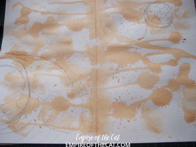 So after I made my tea, I squeezed the teabag out all over this page and then left it to dry while I had my tea and biscuits. Then I started sketching my tea and biscuits on the page, because, why not lol. I had been wondering what I was going to put on the page and then I thought, why not just draw what’s in front of me!
