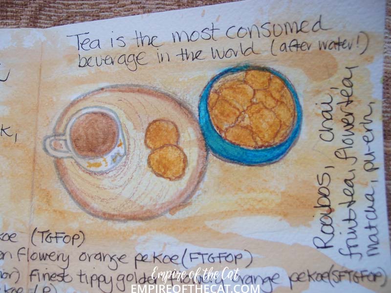 Fascinating facts about tea and your page and sketches are beautiful. A friend from Canberra had sent an Anzac biscuit recipe when the Young One was had selected Australia for her country in the 3rd grade Holidays Around the World. I had to substitute the Golden syrup as I couldn’t find it. I think I used either corn syrup or honey. So long ago I can’t remember. The cookies were a hit though. Vegemite, not so much ? Happy T Day