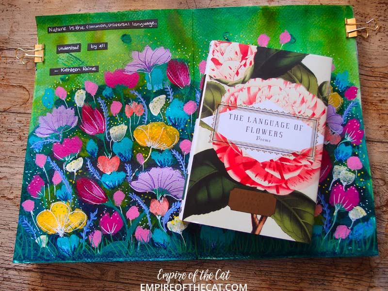 Art Journal Journey – Language – May Challenge For the language theme I chose the language of flowers and a quote about nature and language