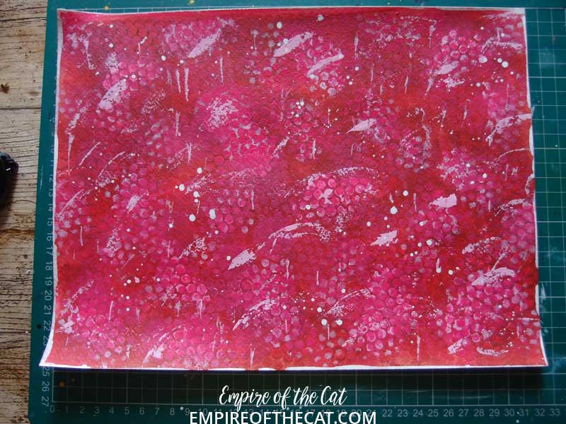 I used the leftover Candy Floss paint and the edge of my stencil to make more marks over the background.