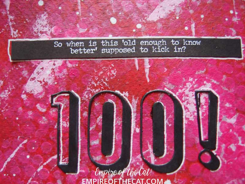 Thinking about 100 made me think of age, which is why I added the old gentleman, and so I used this Tim Holtz sticker to add to my page, with the answer to the question below it LOL. This 100 uses the other part of the Shadow Number die, so it cuts two sets of numbers at once, very handy!