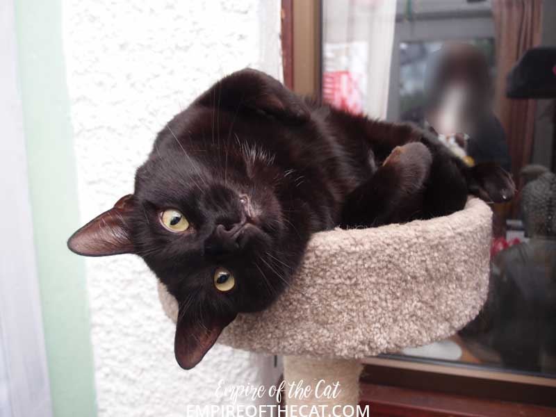 The problem with the kittens is that one of them, Mr G, is enormous, here he is trying to squeeze himself into a regular cat tree bed.