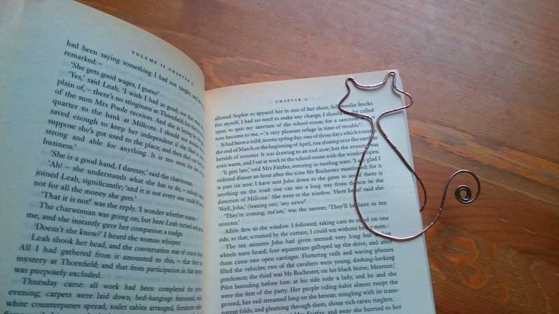 I have a black plastic cat as bookmark. Only the paws stick out 🙂