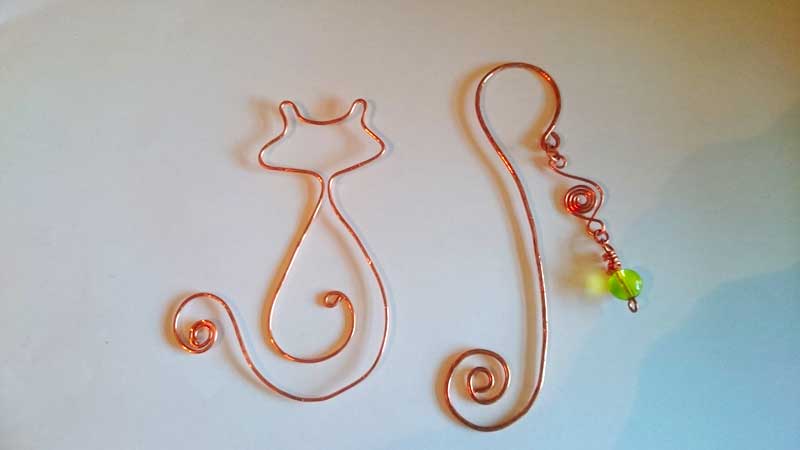 I was just using a set of markers for wine glasses that a friend made with a very similar technique. There’s a springy wire circle to attach to the stem of the glass, and an individual pattern of beads to mark each one as distinct. The bookmarks look like a great way to use this jewelry making technique.