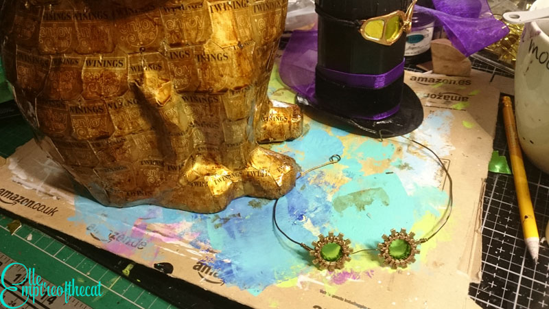 Glassicals (cross between glasses and spectacles) – metal cogs, jewellery wire, metallic cardstock (fully removable)