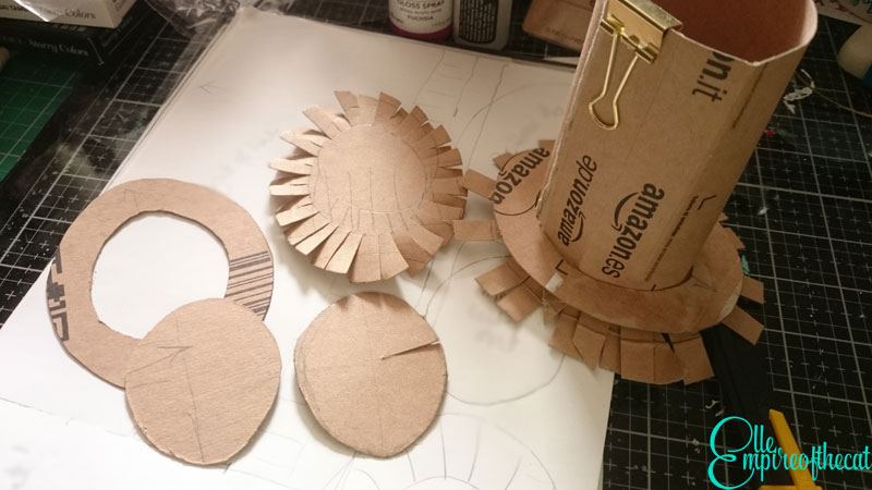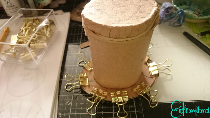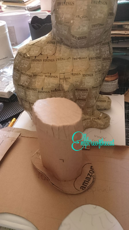 Putting the cat away to dry, I started work on the hat. I used an old amazon box and made quite a tall top hat for the kitty to wear.