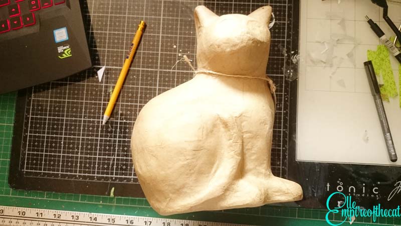 The second thing that inspired me was this papier mache cat that I bought a couple of years ago and the poor thing has been sitting on top of a bookcase ever since because one of the kitties seems to really like the taste of papier mache.