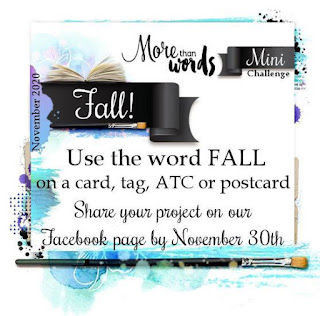 It’s time for a new Mini Challenge over on More Than Words Challenge Blog and here is my DT inspiration for it this month. I do love fall and for this challenge I decided to make a tag but to use leftover pieces of this masterboard I used back in May to make some positive reinforcement cards. These leftover strips have been waiting to be used on a project and today’s the day my friend! I am also thinking of my kitty in the leaves and yes it did have some influence on the direction of this project lol.