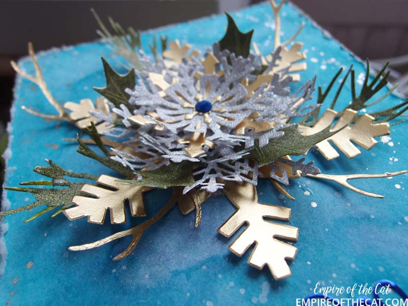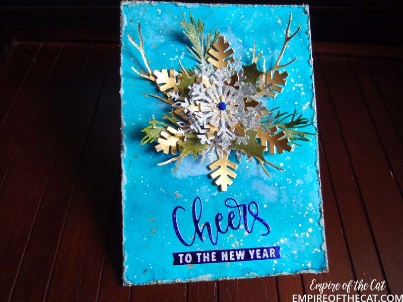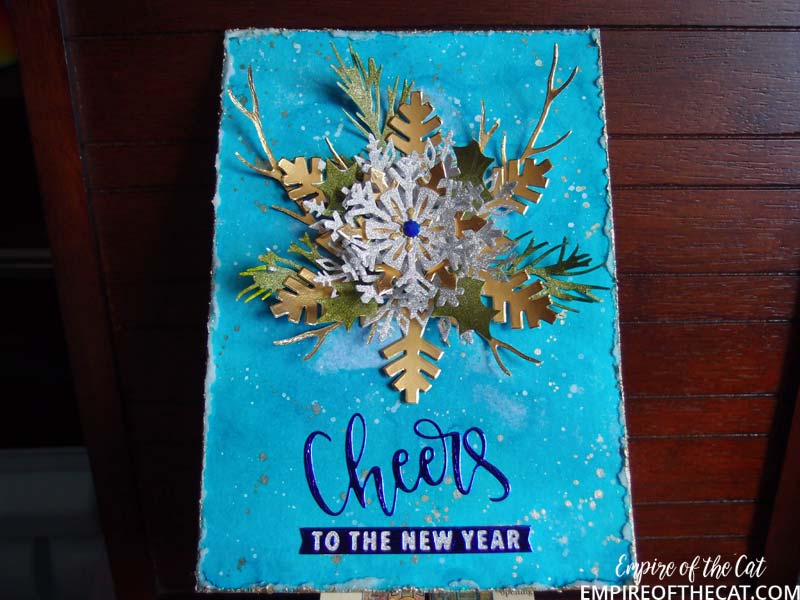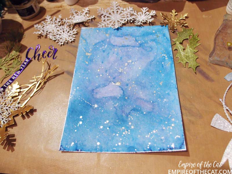Here it is dry and ready to go – to make it more festive I added a lot of gold splatters to the background.